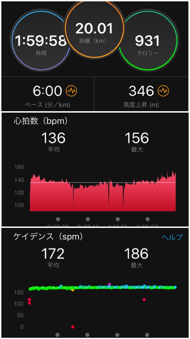 続いて、シューズをmanaに履き替え、2時間のLSD。ぐんぐん気温が上がり、6'00ペースといえどもなかなかしんどかったが、走りきった。
