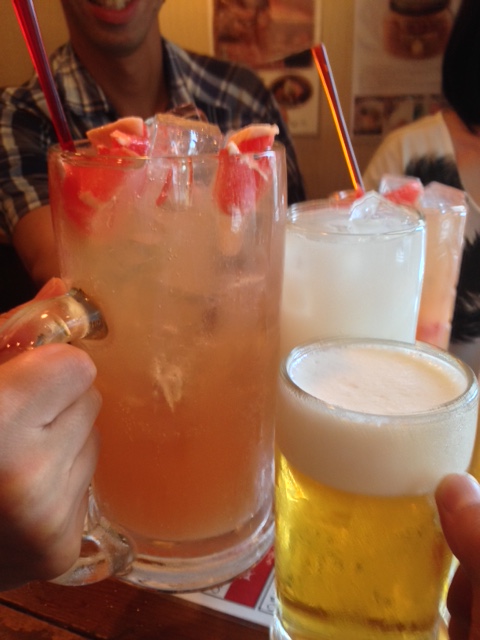 お開き~のはずが、飲みたらないメンツが7名。なぜか新小岩まで移動し(笑)、15時オープンの居酒屋に流れ込み、乾杯emoji 通常ジョッキのメガサイズは、フジヤマさん。