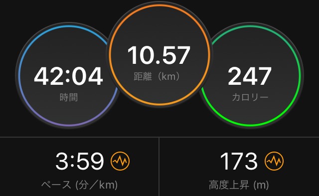 向かい風区間は結構しんどかったが、無給水で、全体を通してかなり楽ちんにこなせた。呼吸も楽だった。水道がある場所まで、プラス600mは気持ちよく3'45/kmペースまで上げた。