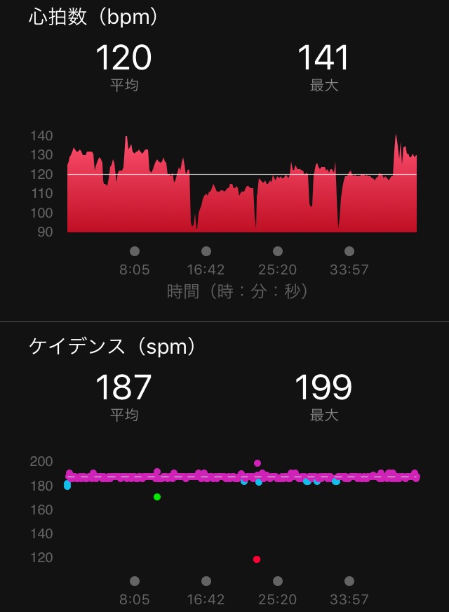 それにしても、平均心拍数が120とはありえない誤差。235J、時々機嫌が悪くなるので困ったもんだ。