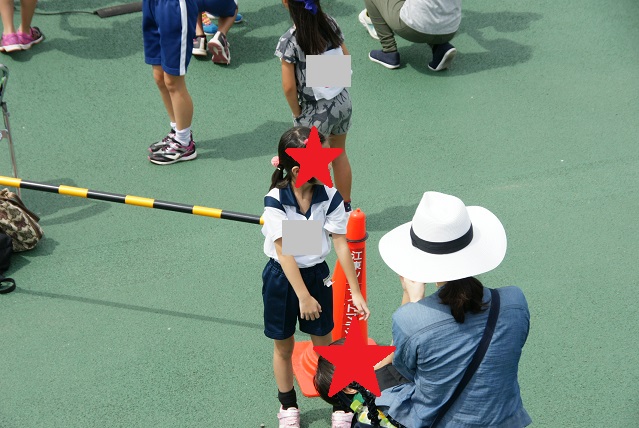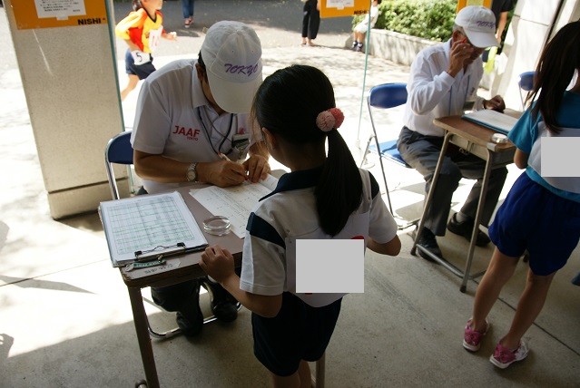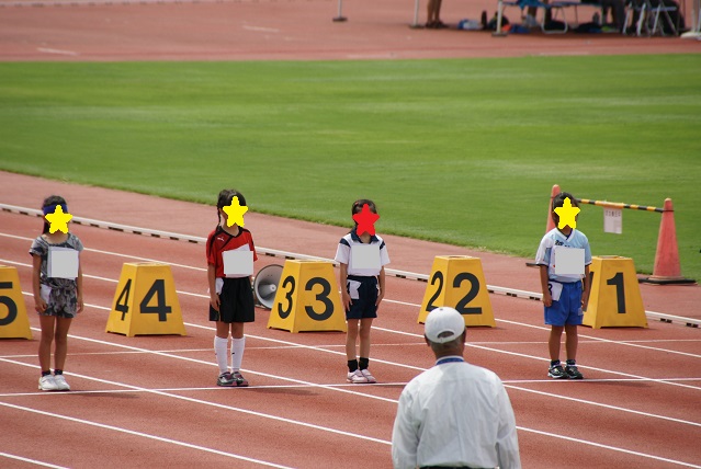各種目ごとに、陸協スタッフによる招集コールがあり、娘の緊張もマックスにemoji