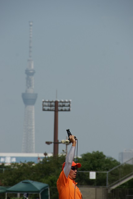 スカイツリーをバックに、スターターも本格的。