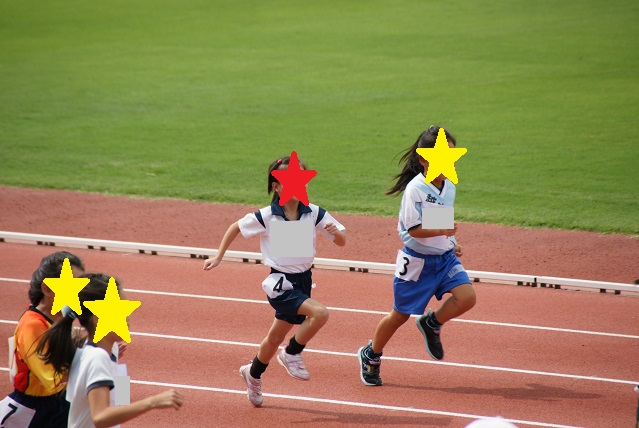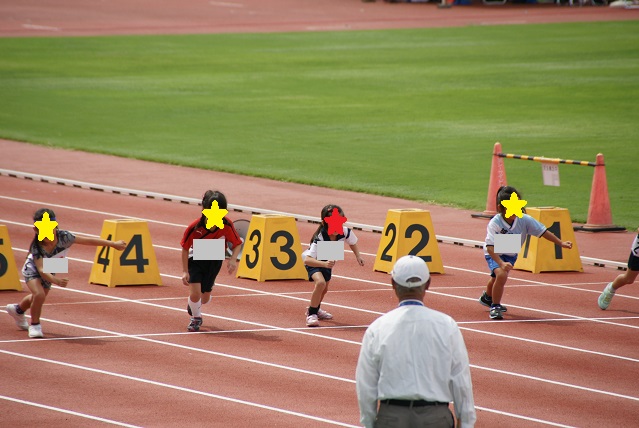 小学生低学年女子の部。いよいよ娘の出番!表情が硬いemojiめっちゃ緊張してるよ。位置について・・・