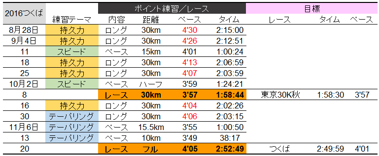 その前に、本命つくばに向けて、昨シーズンに実施したポイント練習の振り返り。