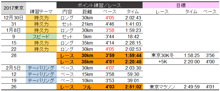 12月の足立フレンドリーの後、再び冬シーズンの目玉、東京マラソンに向けて、同じプロセスを踏襲。