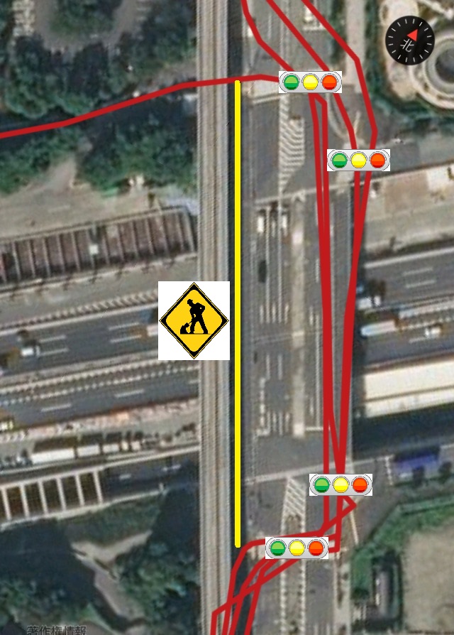 なんだか、今日は調子がイマイチだった。しかも、お台場のマイコースの一部が工事中で、マップ ↓ の黄色を通れば信号はないのに、迂回が必要で、信号4回emoji