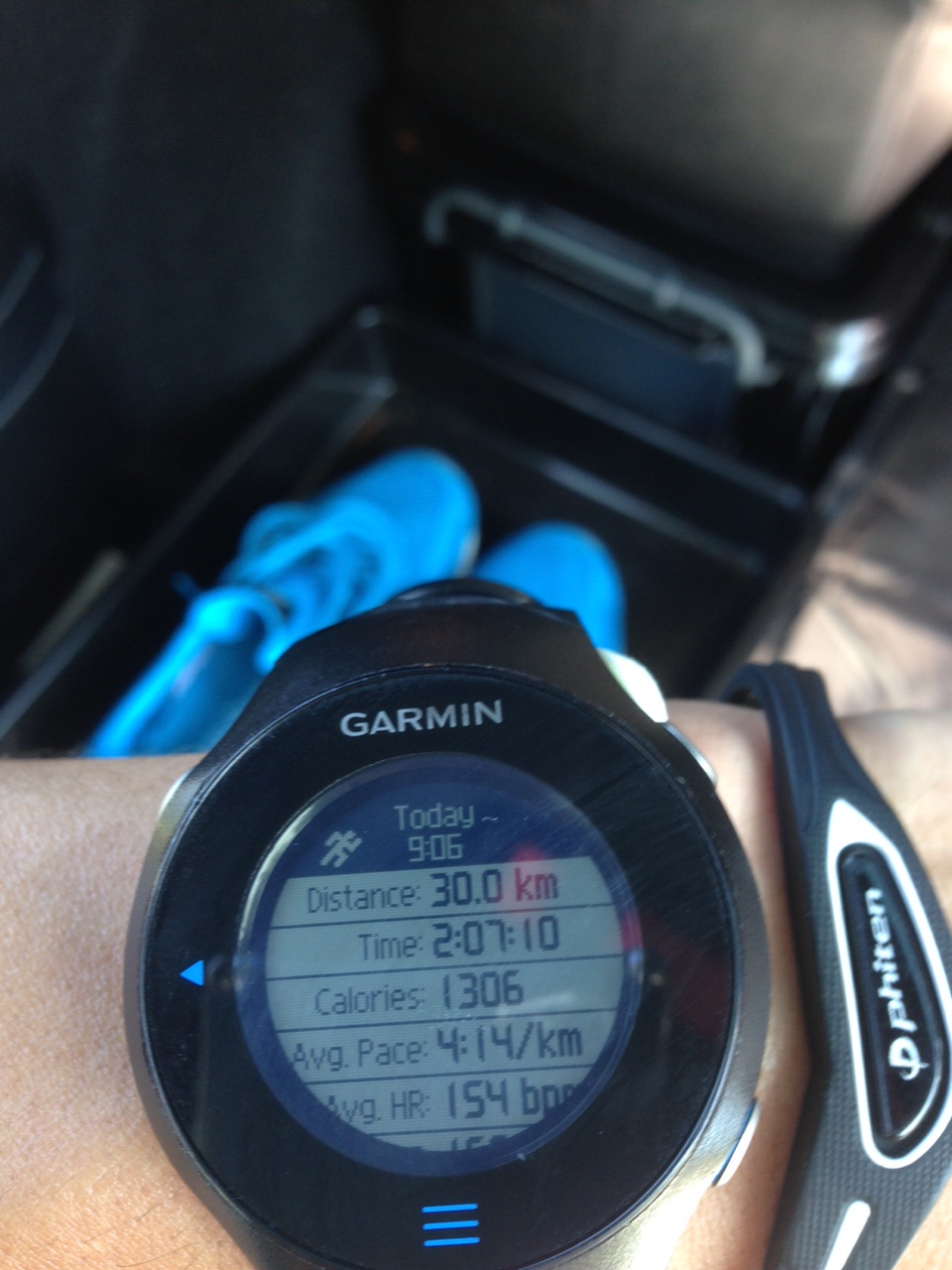 30kmペース走。先週は4'20をクリアできたので、今日は4'15。日差しは強いが、風が心地よく、ほぼイーブンでクリア。2時間7分10秒、平均ペース4'14。平均心拍数154で、先週の155よりも好結果。