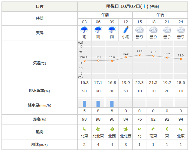 3連休となる今週末は天気が悪いらしい、という会話を耳にした。あちゃ~、朝から雨だってさ・・・。降水確率90%ってemoji
