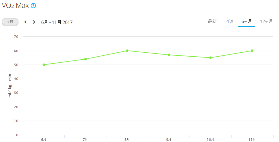水戸が終わって脚が「リセット」されてからは、調子が上がりつつある。それが、VO2 Maxにも表れているような気がする。