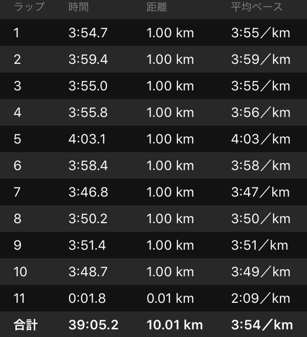 続いて、10kmのEペース走を淡々と。