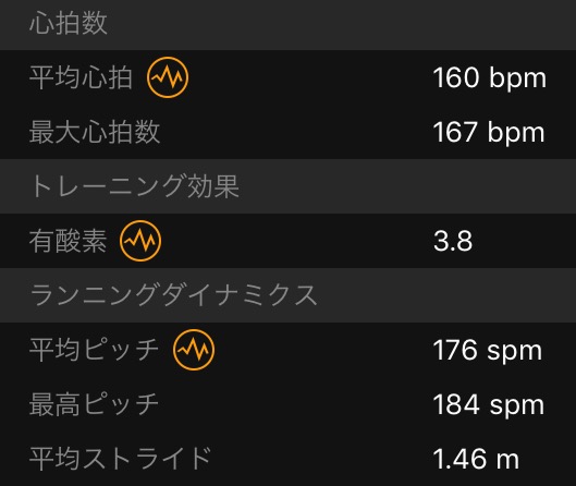 心拍数はあまり上げずに走り切れたが。ピッチ数176は良くないな。レンブーはjapanと違って前足部にしかboostがなく、フォアフットを意識し過ぎてストライドに頼り過ぎたのかも。