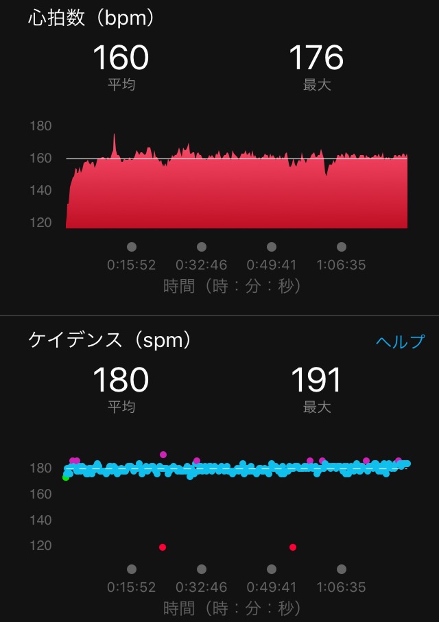 06 December ハーフ @お台場 日曜はお台場でハーフの練習。快晴、気温12度、ほぼ無風。絶好のコンディション。足立フレンドリーに向けての練習なので、シューズは久しぶりにtakumi ren boostを解禁設定ペースは3'55。数日前に記事にしたプランでは4'00だったけど、調子がよさそうだったので、ちょっとガチってみることにした。① 3'54, 3'55, 3'59, 3'57, 3'54入りは3'54。3日前に3'40~3'45の1kmインターバル5本をやったので、すっとスピードに乗れた。3と4km目で数秒こぼれるが、体感ではペースは落ちていない。② 3'53, 3'50, 3'50, 3'58, 3'54ren boostはやっぱり軽いし、このペースにしっくりくる。それほど無理しなくても、いいペースが出ちゃう。10km時点で39'04。設定に対し6秒の貯金。③ 3'57, 3'54, 3'53, 3'56, 3'54ラップタイムも落ち着いてきた。中だるみしないように集中。呼吸の乱れもないし、ピッチのリズムもいい 15km通過は58'36で、貯金9秒。④ 3'53, 3'56, 3'54, 3'57, 3'57もうゴールは見えた 気持ちの問題かもしれないけど、boostってjapanでもrenでも、ピタッとはまると本当に楽に走らせてくれるシューズだと思う。⑤ 3'52, 0'24ラスト、気持ちよく少しだけペースアップ。1時間22分27秒、平均ペース3'54で、目標クリア 心拍も終始落ち着いていた。序盤に山があり、これが最大176だけど、どう見ても異常値。このペースで平均160は上出来だ(自分比)。ドリフト現象が起きていないことも好材料。平均ピッチ数も180回/分。途中でピッチ数を意識しなかったが、リズムがいいと感じていたので、やはり自分にとっては180が丁度いいらしい。4kmのダウンジョグをして、気持ちよく終了。いい練習ができて満足これまでの練習ベストは1月の1時間24分21秒で、平均心拍数166。10月の東京30K前のペース走では1時間24分23秒で、心拍数162。いずれも100%ガチではないが、練習PBを約2分も更新できた1月に走ってPBを出した東京喜多は1時間21分03秒で、心拍数175(この日は風強め)。これらのデータと比較して、今回の内容は非常に良い。なぜここまで調子が良かったのかは分からないけど、80分切りに期待が持てる更新の励みになります。応援クリックお願いします。 PR
