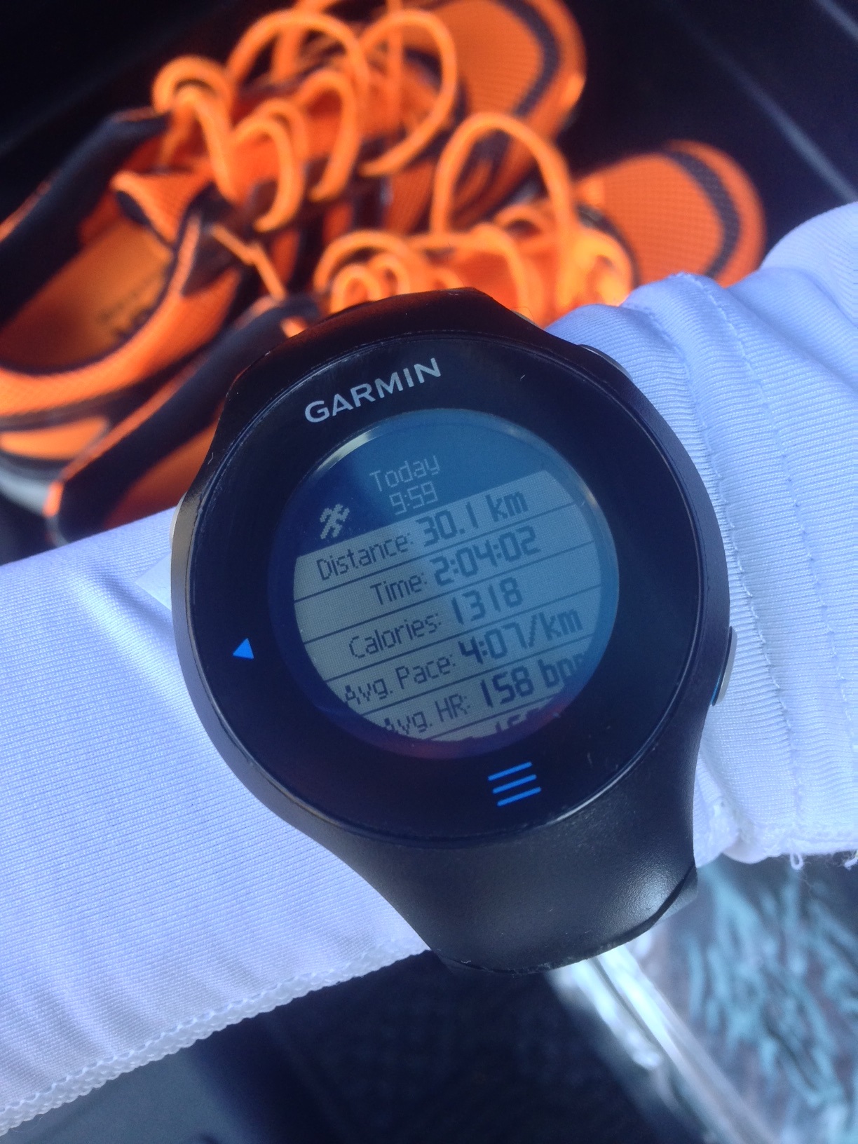 結果、30km通過時のタイムが2時間3分37秒で、平均ペース4'07をクリア。しかも平均心拍数が158と自分としては上出来。