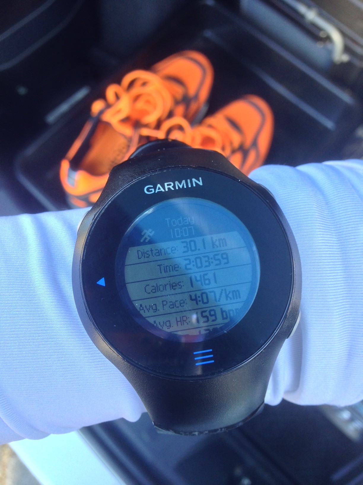 結果、30km時点で2時間3分40秒、ペース4'07、先週とほぼ同じタイムでまとめられた。