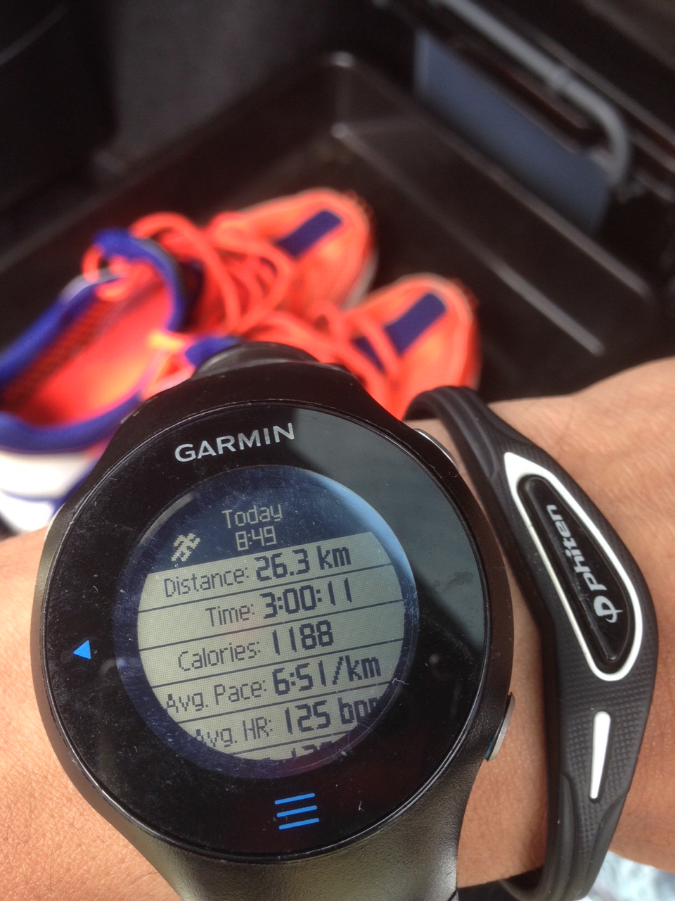 走り終わってから飲むプロテイン(DNSのエスプレッソ味)とトマトジュースが最高に美味しい。