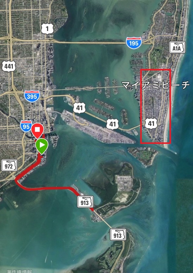 マイアミビーチで行われたローカルなマラソン大会。コースは下の地図で赤線で囲った辺り。