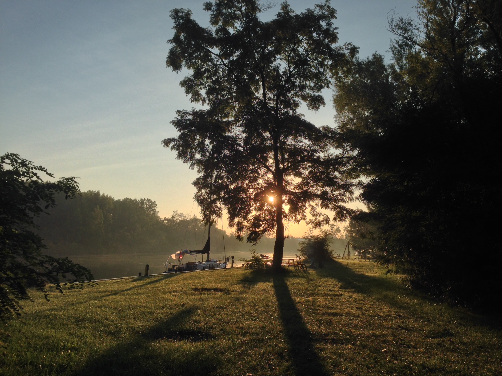 無事にフェリーに乗りこむことができ、デッキで朝風に当たりながら軽くストレッチ。朝日が眩しい。気持ちいい。