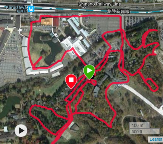 軽井沢マラソンフェスティバルのコースをなぞってみる。碓氷峠を越え、折り返し、駅前を通り、旧軽の銀座通りまで行き、10.8km。