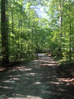 路面は土と砂利が混ざってちょっと走りにくいけど、これもトレランならでは。ほとんどが日陰になっていて、蒸し暑さが軽減され、実に気持ちいい。