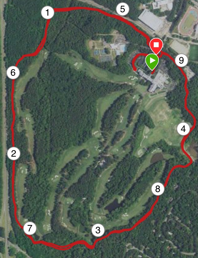 走ったのはこんなコース。とある郊外のホテルのすぐ近くに、ゴルフ場をぐるっと囲むようにトレランのコースが整備されていて、1周3マイル弱=4.7km。