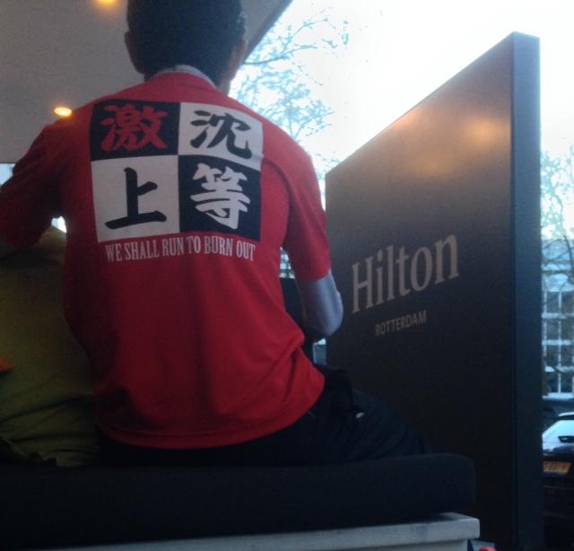 9日のロッテルダム・マラソンのゴール地点で、ひと足お先に激沈。