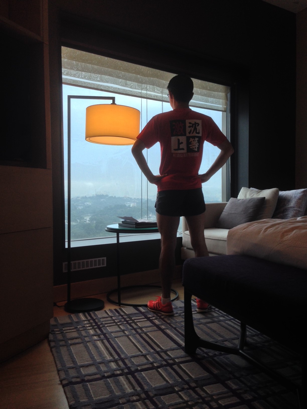 ではでは、一気に写真を。まずは、ホテルの部屋で走る前から、激沈。