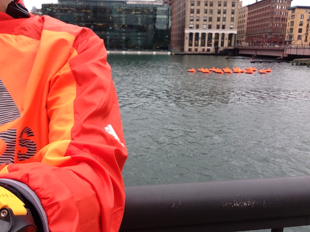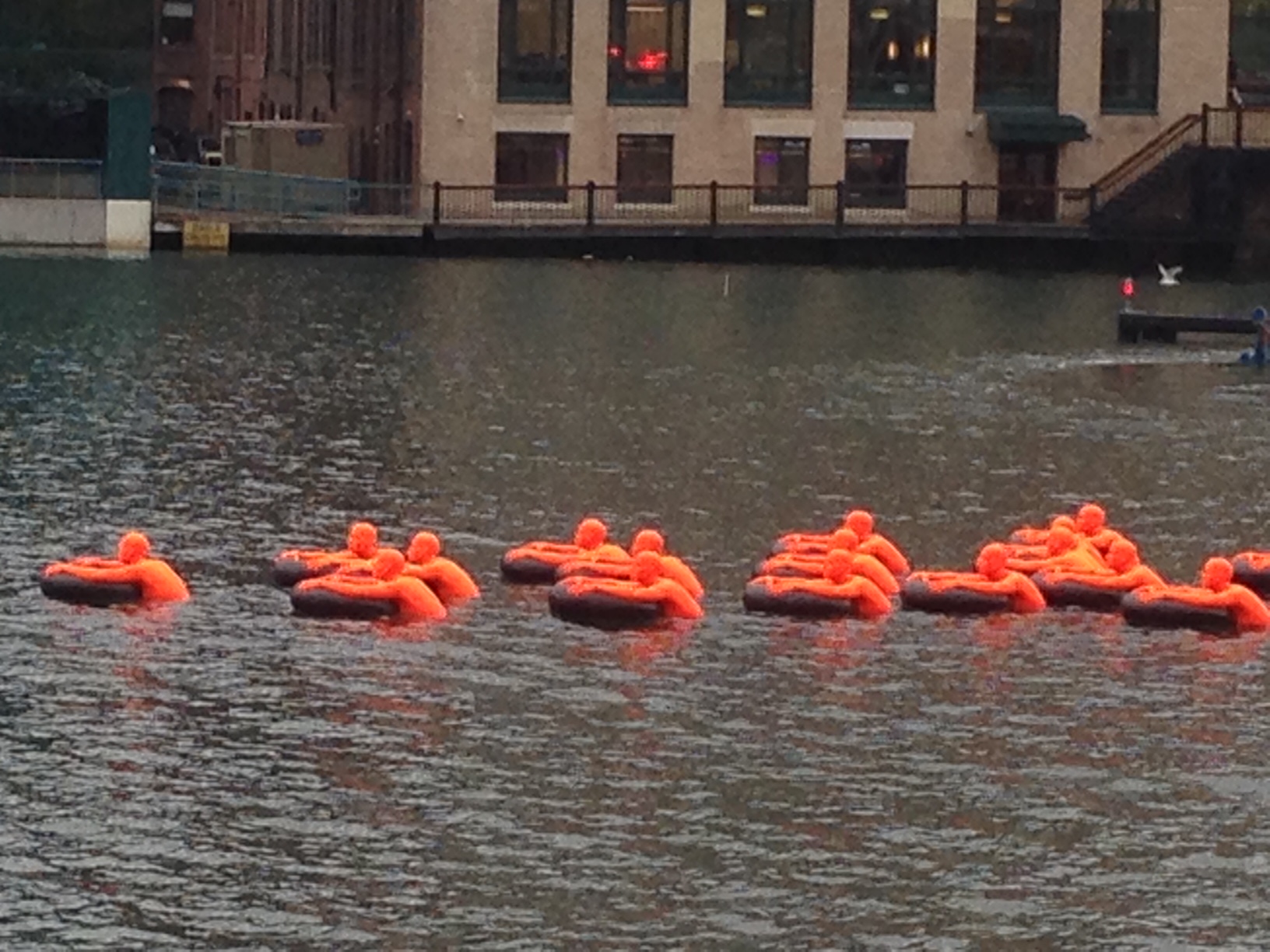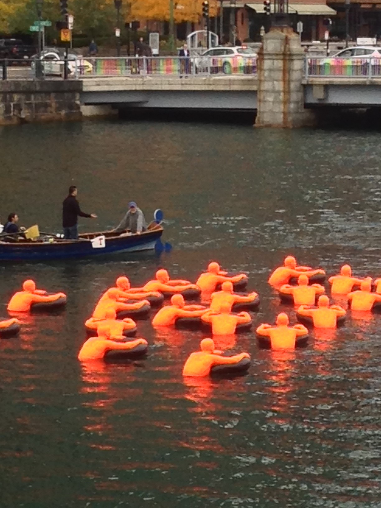 すると、この寒い中、オレンジな人たちが何やら運河に浮いていた。