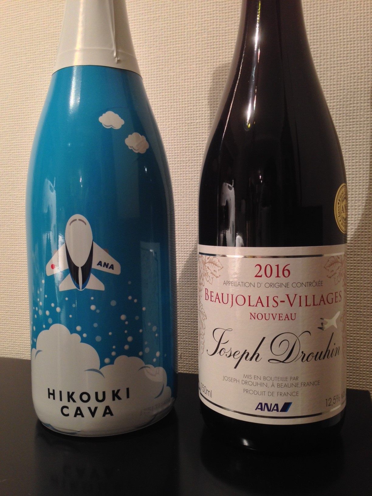 今年は定番5本に加え、ANAのマイレージで交換した1本と、ボトルのデザインが可愛らしいスペイン産のスパークリングも。セラーがいっぱいになったemoji