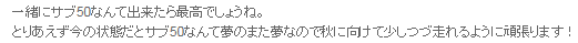 と言われた。いやいやいや、あ~たは昨年の富山で既にサブ50してるでしょ~がemojiと突っ込みたくなったが(笑)、確かに、そうなれば最高だな、そのために頑張れるなと思った。