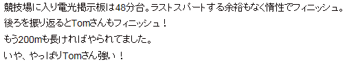 「いっしょにサブ50しましょう」と言われていた。ブログにはあえて書かなかったけど、僕がつくばでサブ50にこだわったのは、こんな背景があった。