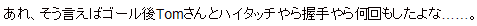 ゴール後、「直ぐに迎えてくれた。一番に報告できてよかった。ガッチリ握手」