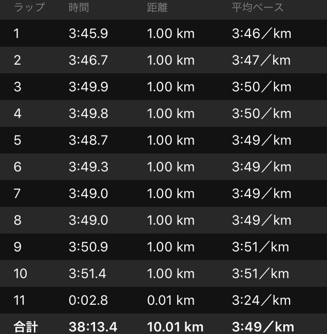 前回の15kmに続き、この10kmも自分が想定したペースで落ち着いた。良く言えば、自身の走力とコンディションをきちんと把握できているということだろうか。
