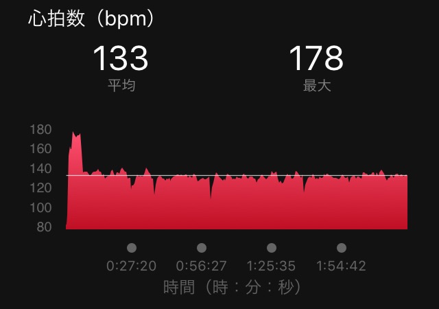 いわゆる撃沈した時って、心拍が上がらないので、こういう形でしっかり追い込んでゴールできたのは、次につながるはず。