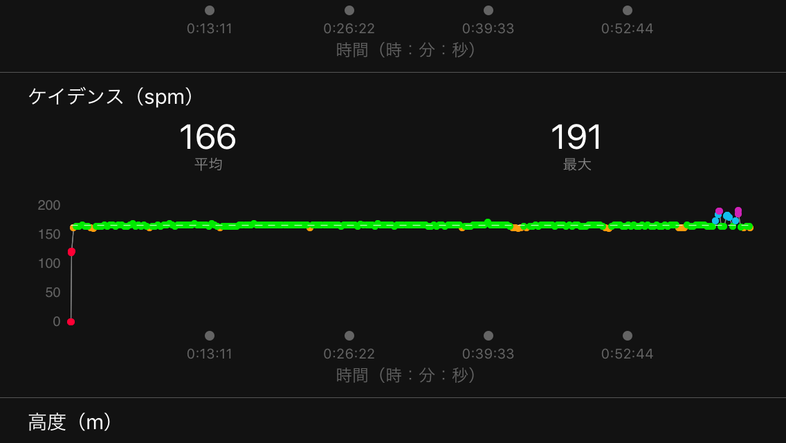 235Jの新しい機能として、ケイデンス(1分間のピッチ数)の測定が可能。これまでにないデータを得ることができ、今後のトレーニングに活かしていきたい。