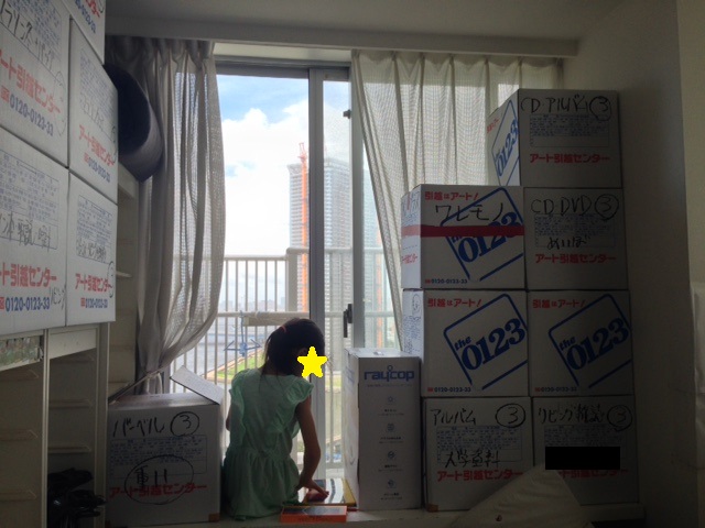 それでも眺めはよかった。娘も気に入っていたようで、積まれた段ボールの間でスケッチをしていた。