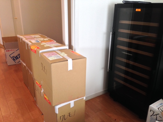 引越翌日の昨日、もうひとつの大事なミッションもクリア。専用の輸送箱9本入り8箱、クール便で事前に送ってあったワイン72本も届いて、無事にセラーに収まった。