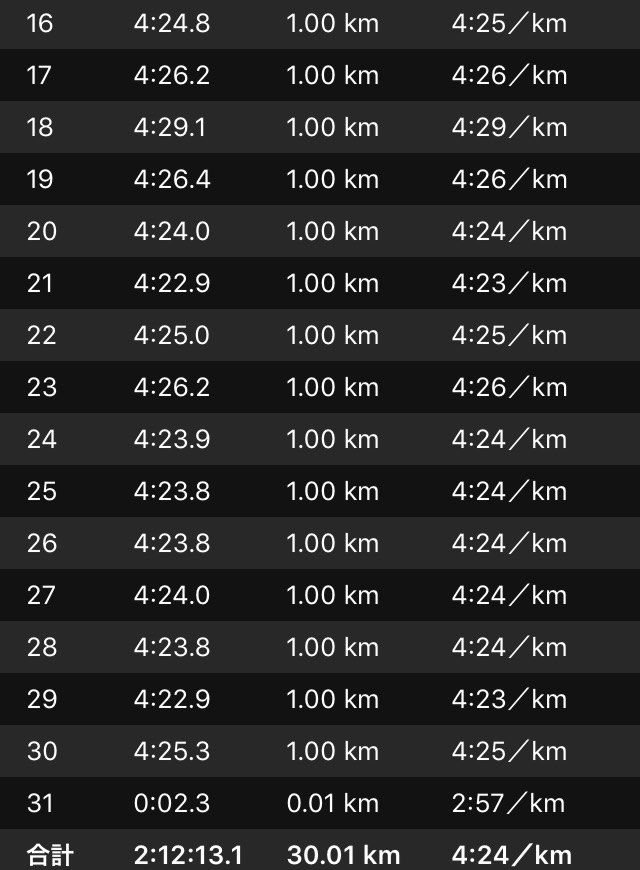2.195kmの上乗せがないからか、思ったより疲労が溜まっていない(笑)。それとも、設定ペースが甘かったのか?そんなことはないと思うんだけどな・・・。