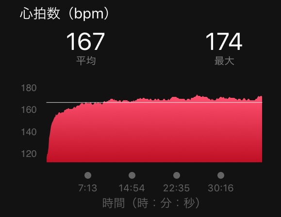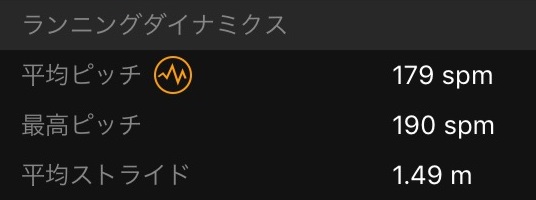 ピッチ数179と、これもいい。ストライドに頼らず、180前後で走れていると、自分の中では高評価。