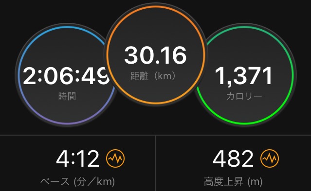 結果は、30km通過が、2:06:09。平均ペース4'12、設定クリア。