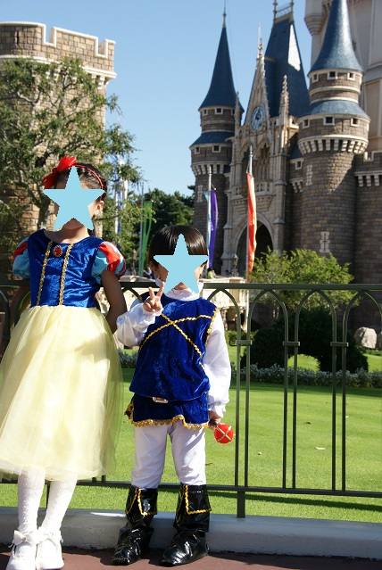 子どもたちはハロウィンと同じ衣装で、白雪姫と王子様。