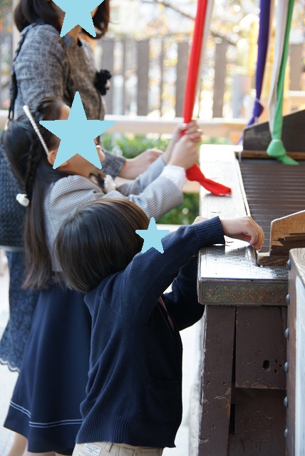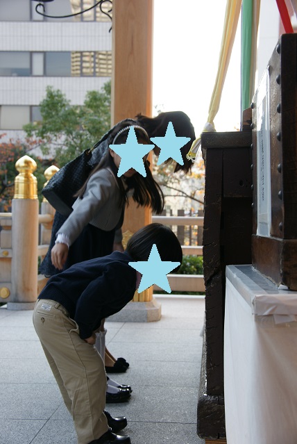 妻のお腹にいた子が、こんなに大きくなったなんて、感慨深い。息子も背伸びしてお賽銭。