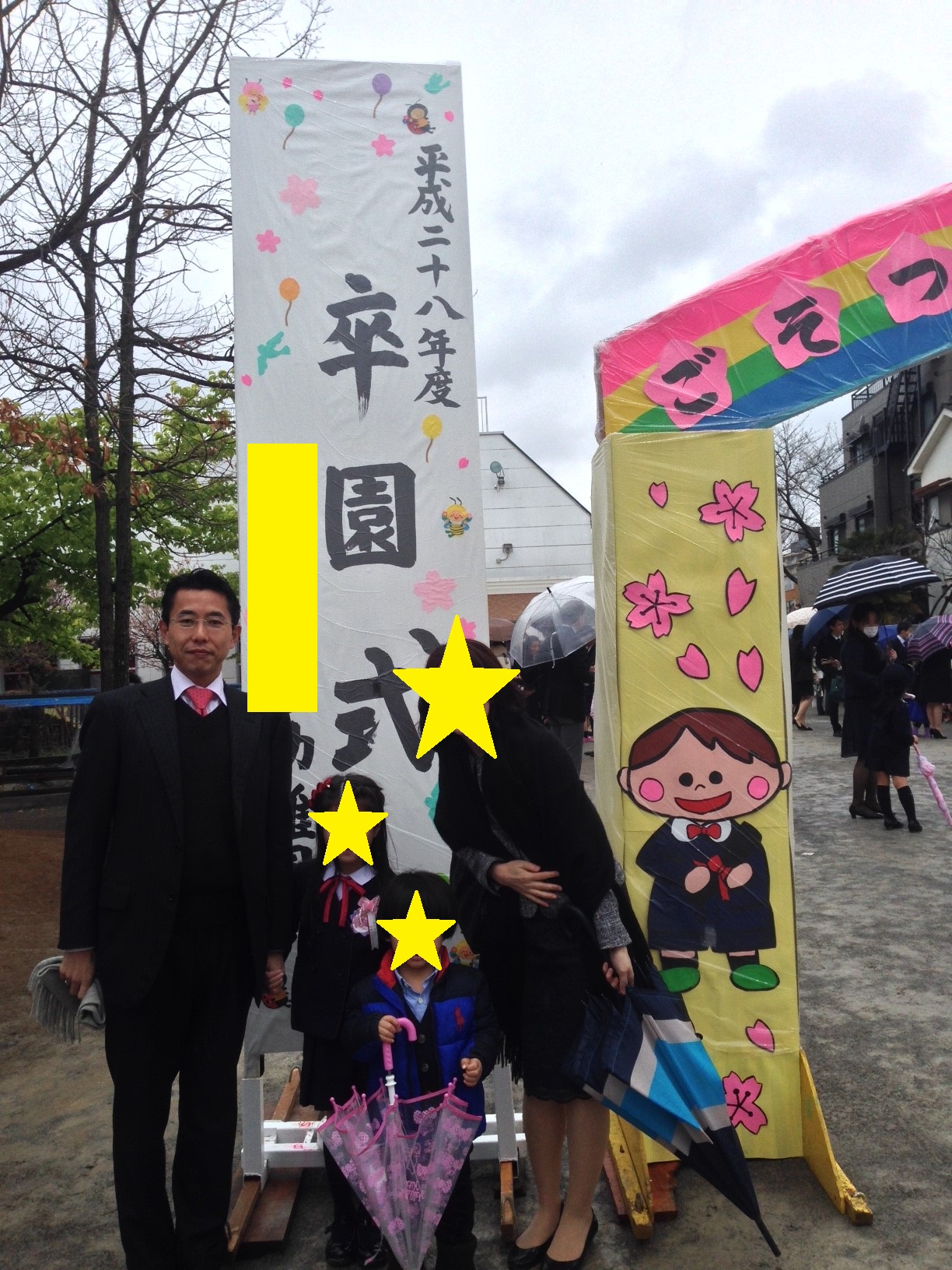 用意されているのは各家庭1席なので、ママと息子が椅子、僕は多くのパパたちと同じようにずっと立ちっ放し。数十の自由席は先着順で、特にルールはなし。誰よりも早く来て席を確保したのだから、問題ない。がですよ、1家庭でパパと祖父母3席とか、小さい子供と2席とか、卒園式という晴れの日に、そういうことできちゃう大人がいることがねemoji・・・。