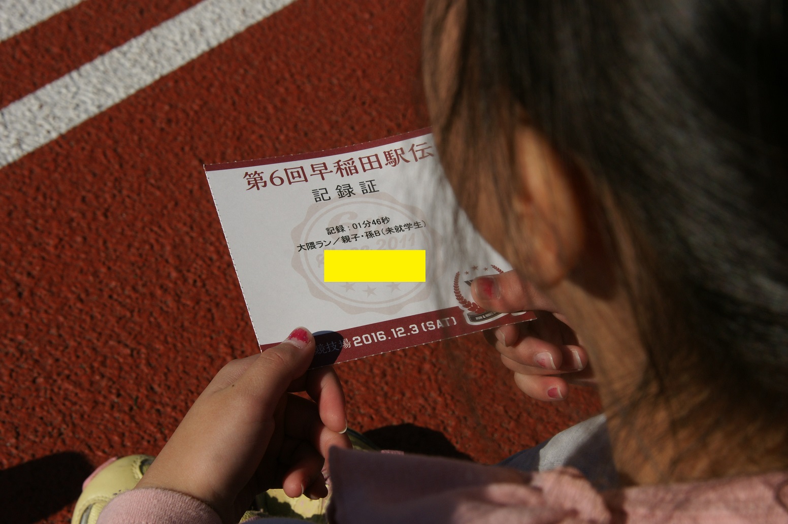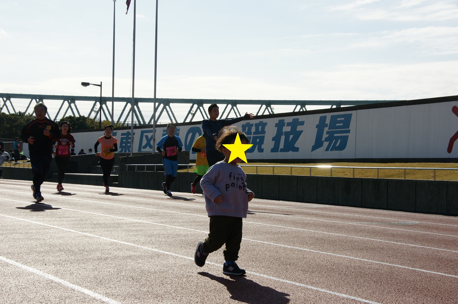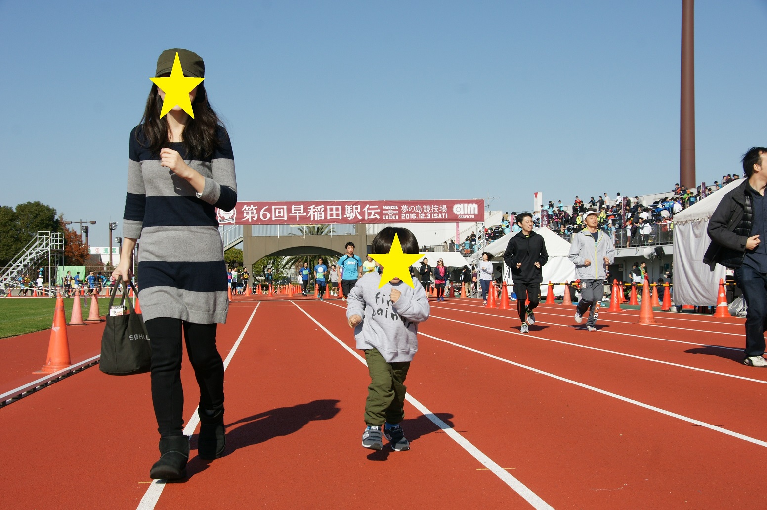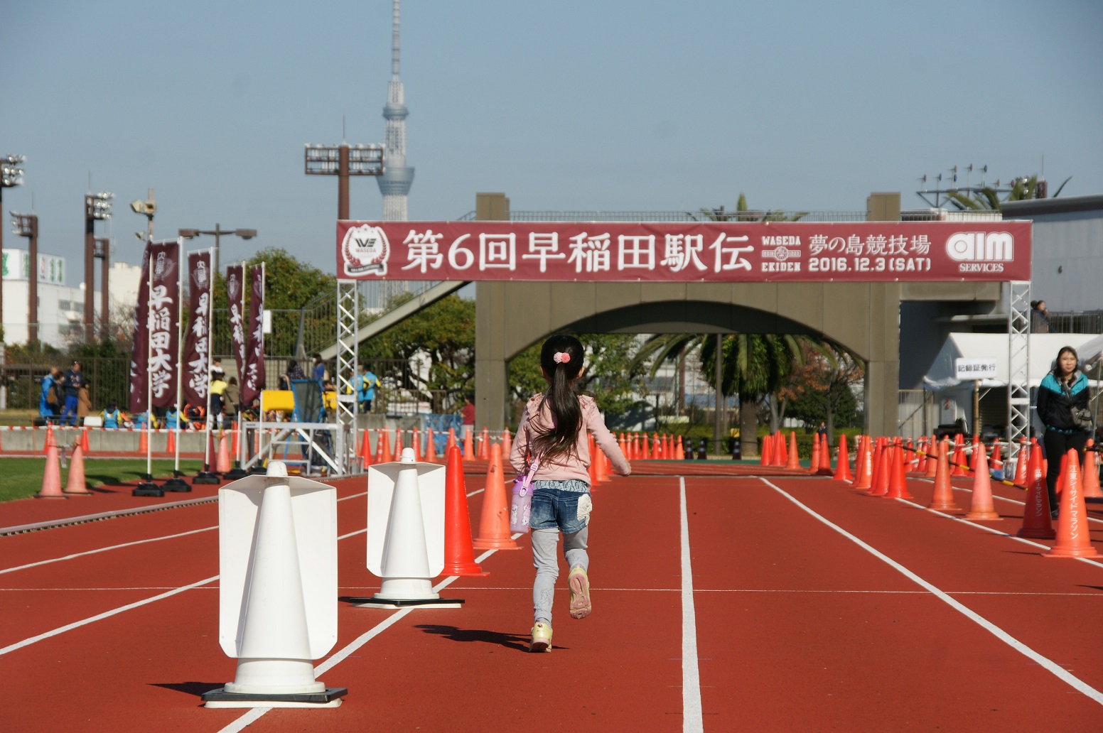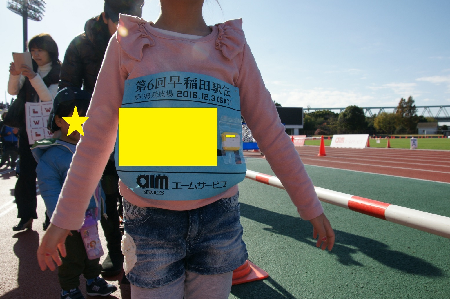先週の土曜、5歳の娘がレースデビュー。夢の島陸上競技場で行われた「早稲田駅伝」。
