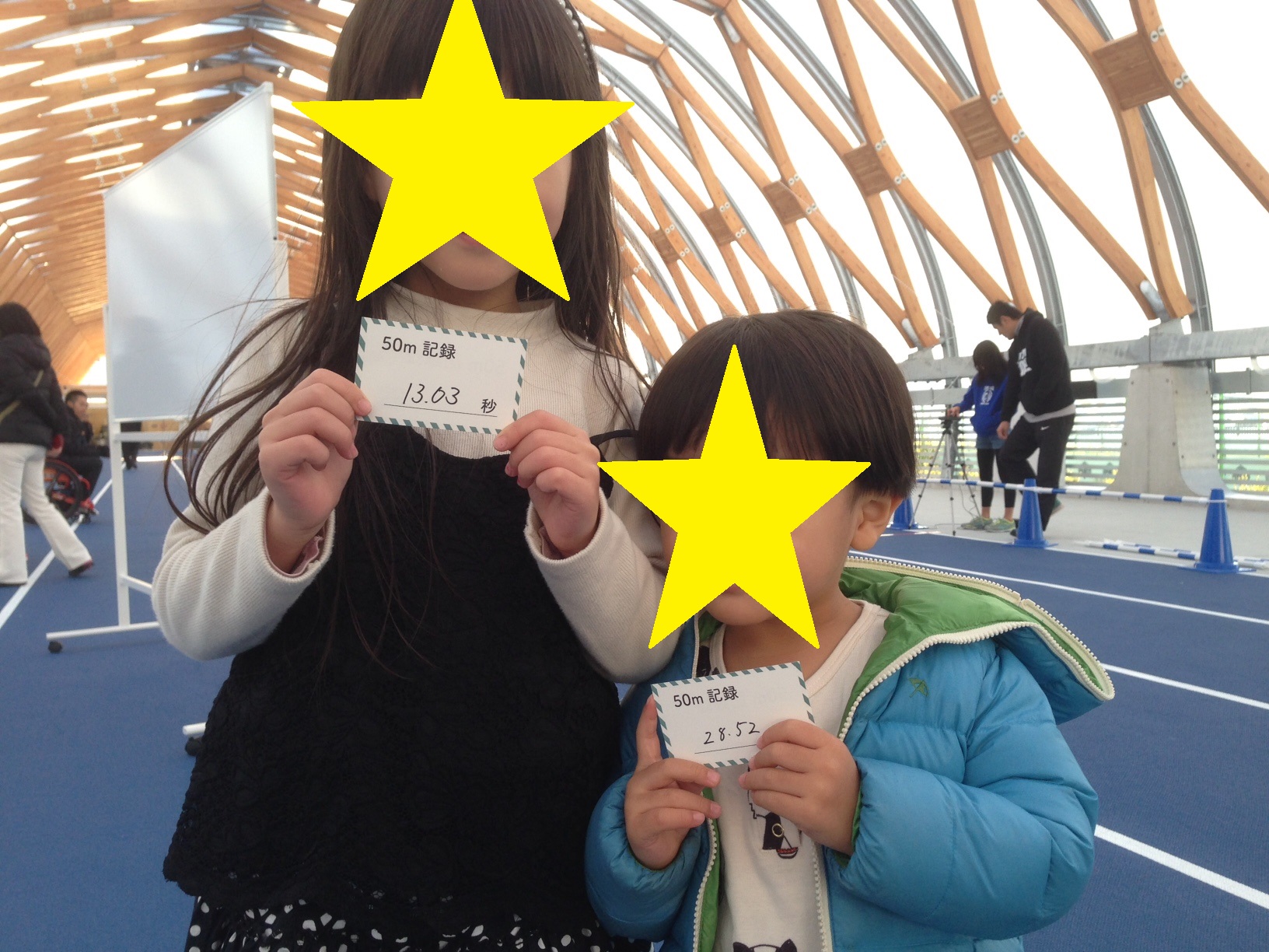 陸上トラック1周のわずか400mだけど、ゼッケンをつけて、ICタグによる自動計測、記録証発行と、大人のレースさながらの雰囲気emoji