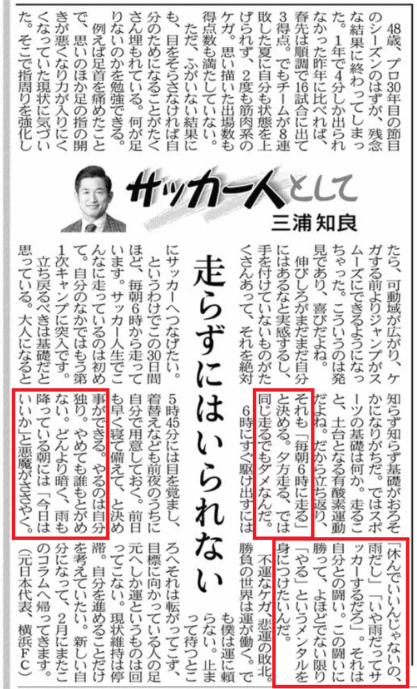 市民ランナーに通じるコメントがあり、嬉しい気持ちになると同時に、カズさんより若いんだから、自分ももっとストイックに頑張らないとな、と思った。