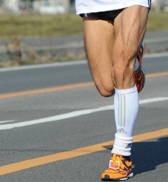 レースが終わって、オールスポーツさんの写真を見ていて気付いたことがある。調子がいい時は、着地した瞬間は太腿がきれいに割れている。一方、調子がよくない(疲労が溜まっていたと思われる)時は、筋肉の割れ目はそれほどなく、太腿の筋肉と膝をつなぐ腱?靭帯?が固くなって浮き出ている。