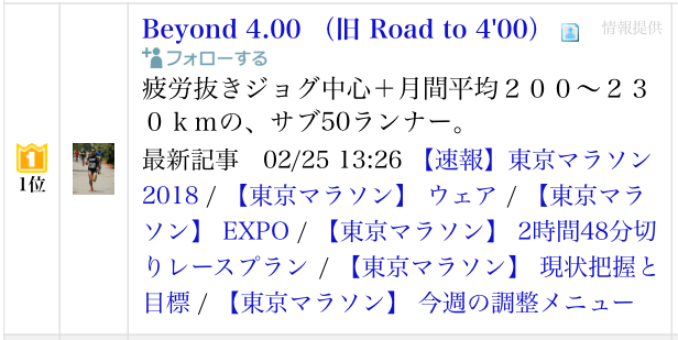 これを目指してブログを書いているわけではないけど、面白いブログとしてではなく、ランナーのひとりとして注目され、東京に向けた取り組み姿勢や昨日の結果に評価してもらえたと都合よく解釈し(笑)、望外の喜び。