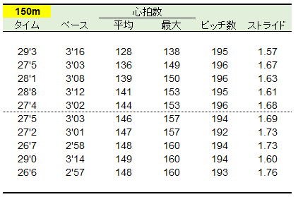 心肺もそこそこ追い込めた。ピッチは190を上回り、ストライドも大きくして走れた。