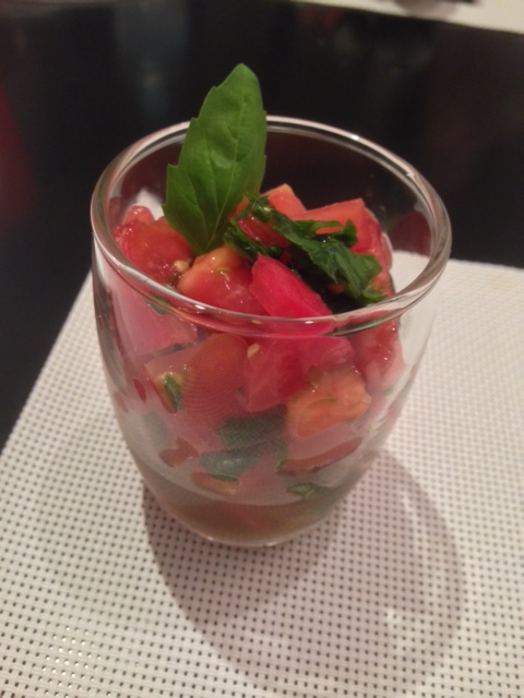 ポワレ料理で、嫁さんが「トマト1個だけ使ったんだ?」と言われたので、サラダか何かにして欲しかったのかと思い、グラタンの付け合せに、刻んだバジルに、レモン汁とオリーブオイルと塩で混ぜ合わせ、さっぱりサラダを用意。