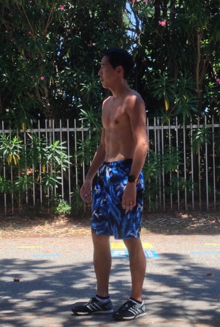 プールに遊びに来たというのに、わざわざシューズ持参(笑)。ランナーあるある(って、ないかemoji)。